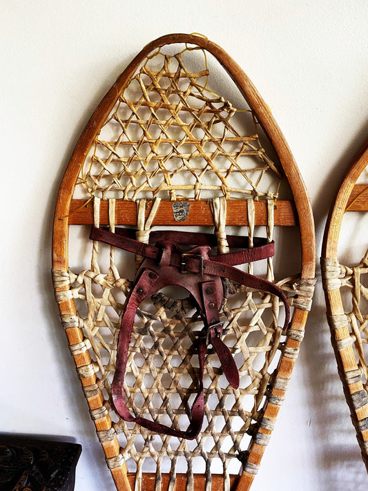 Gran Par De Antiguas Raquetas Zapatos Para La Nieve 105 Cm