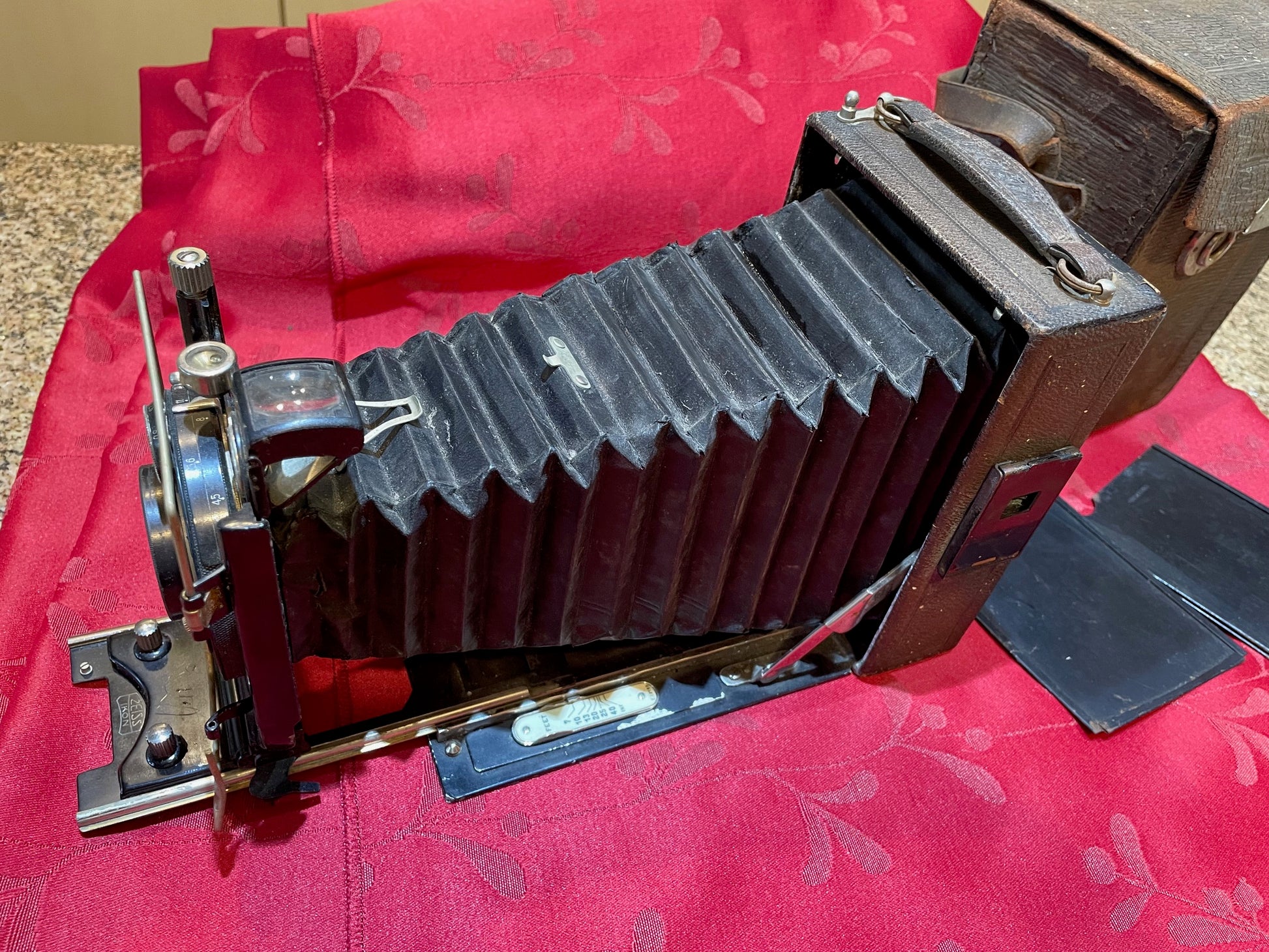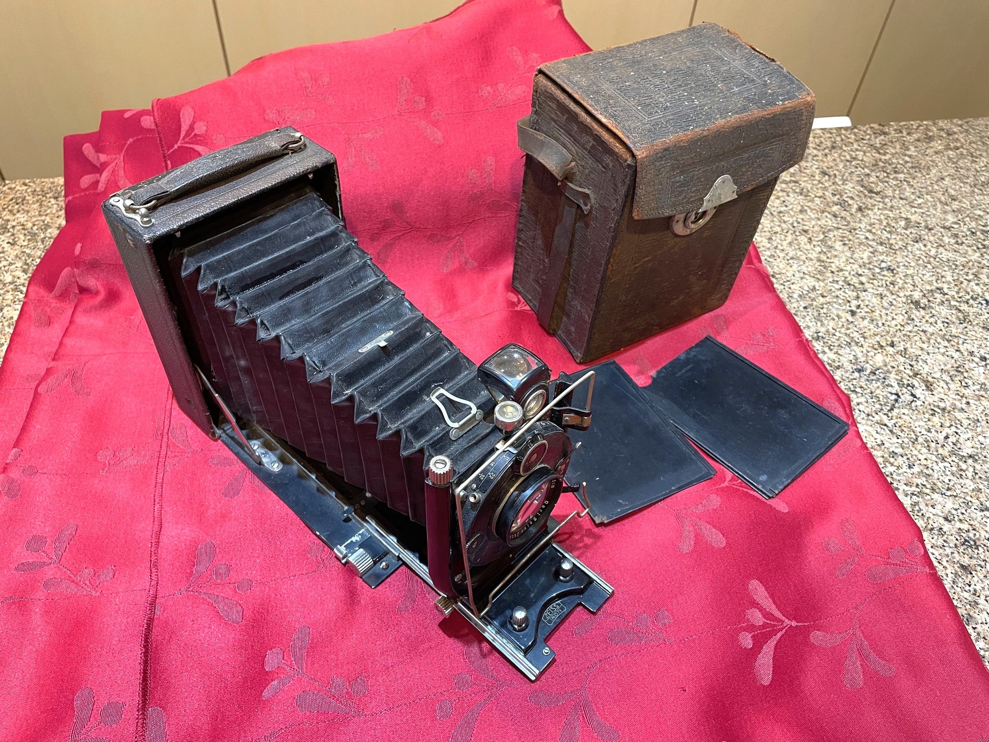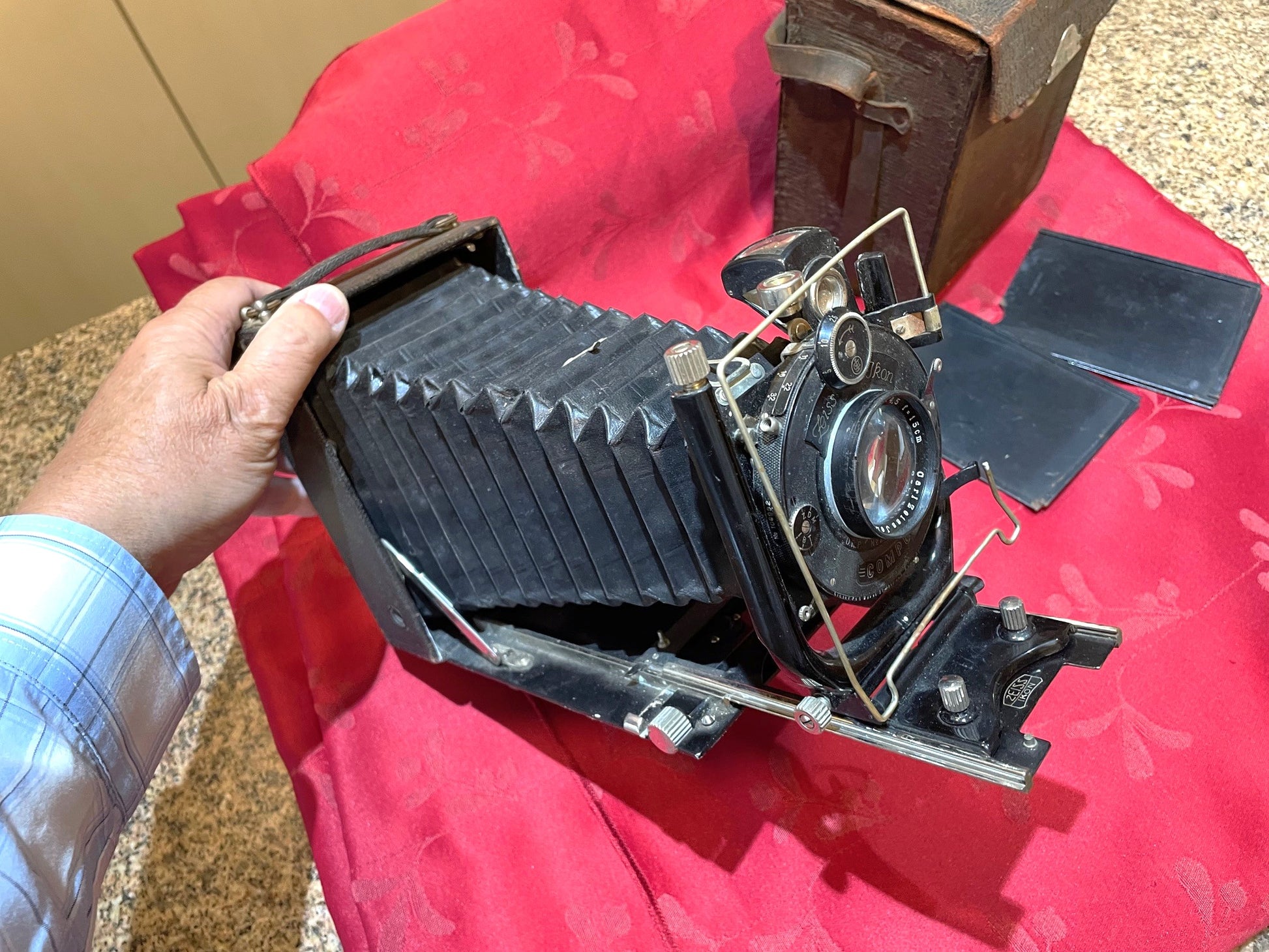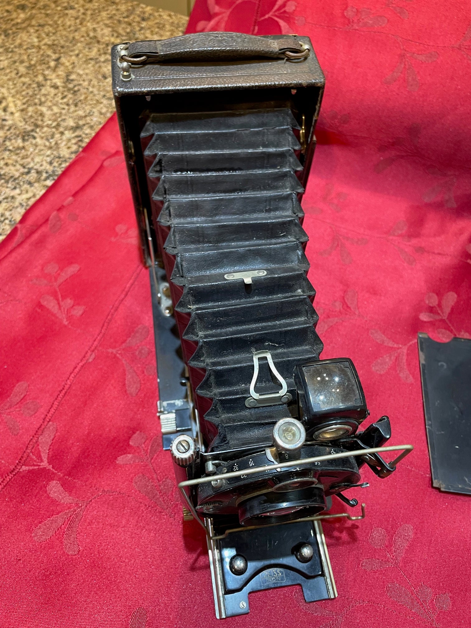 Antigua cámara de fuelle y placas marca Zeiss Ikon modelo Ideal. Super decorativa. El obturador funciona parcialmente. El obturador funciona solo en B y T. El fuelle tiene tiene algunas fugas. Con su estuche original y 2 placas. Para coleccionistas