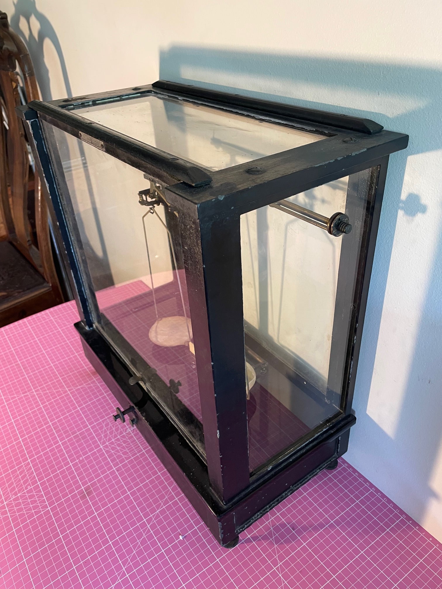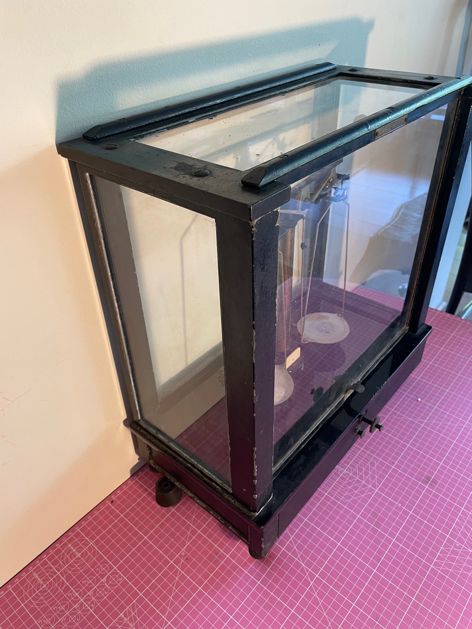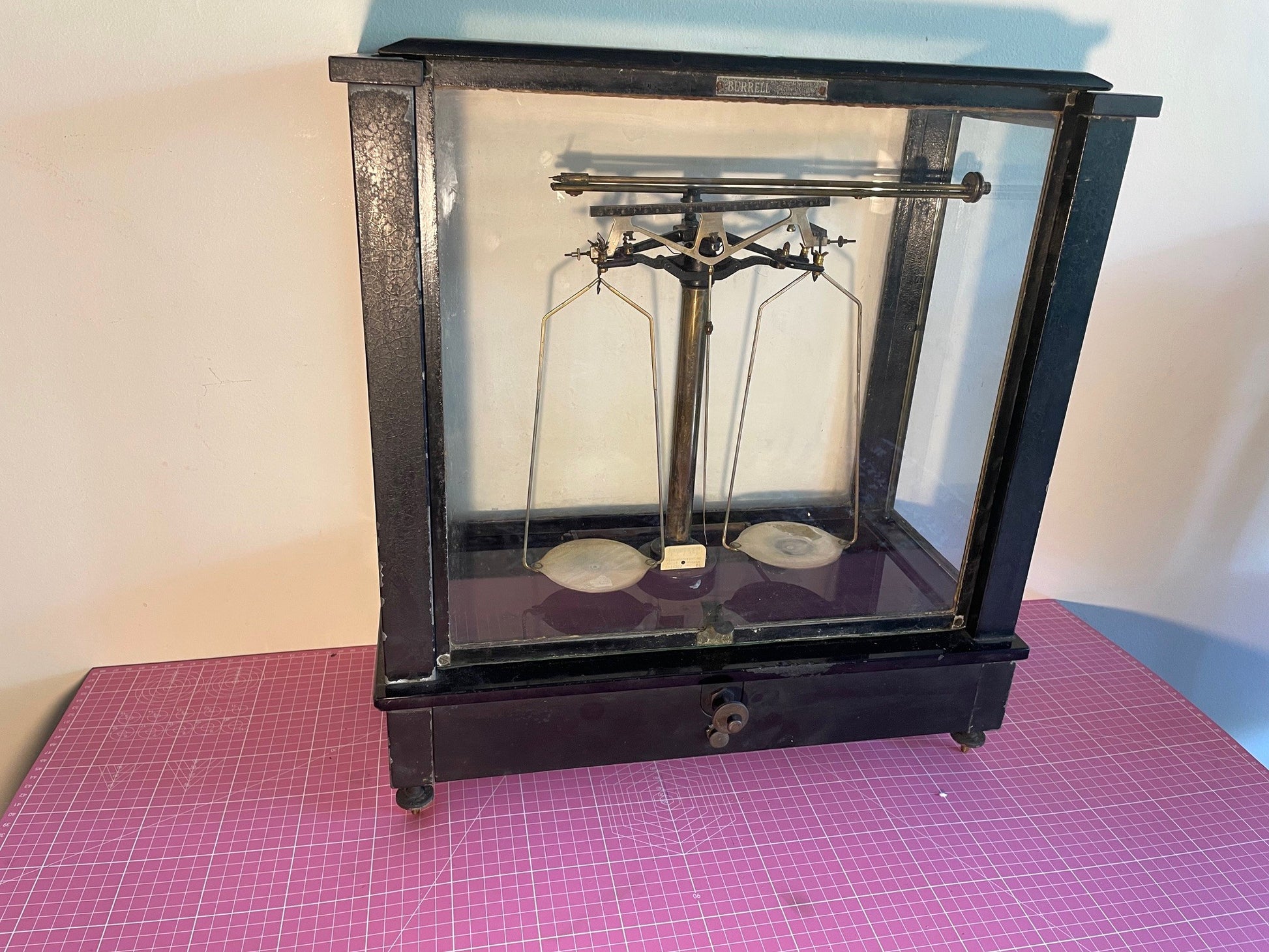 Antigua Pesa o balanza americana marca Burrell. Esta en buen estado , super decorativa. Mide 56 cm de frente, 48 cm de alto 23 cm de fondo.