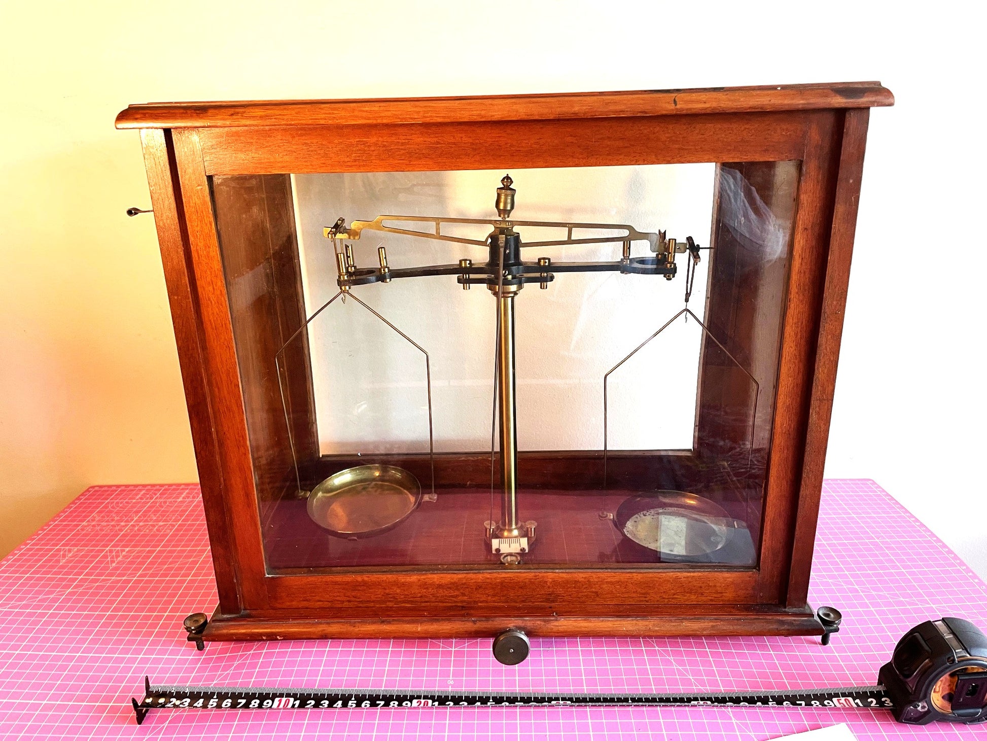 Antigua Gran Pesa Balanza Inglesa De Bronce Y Madera