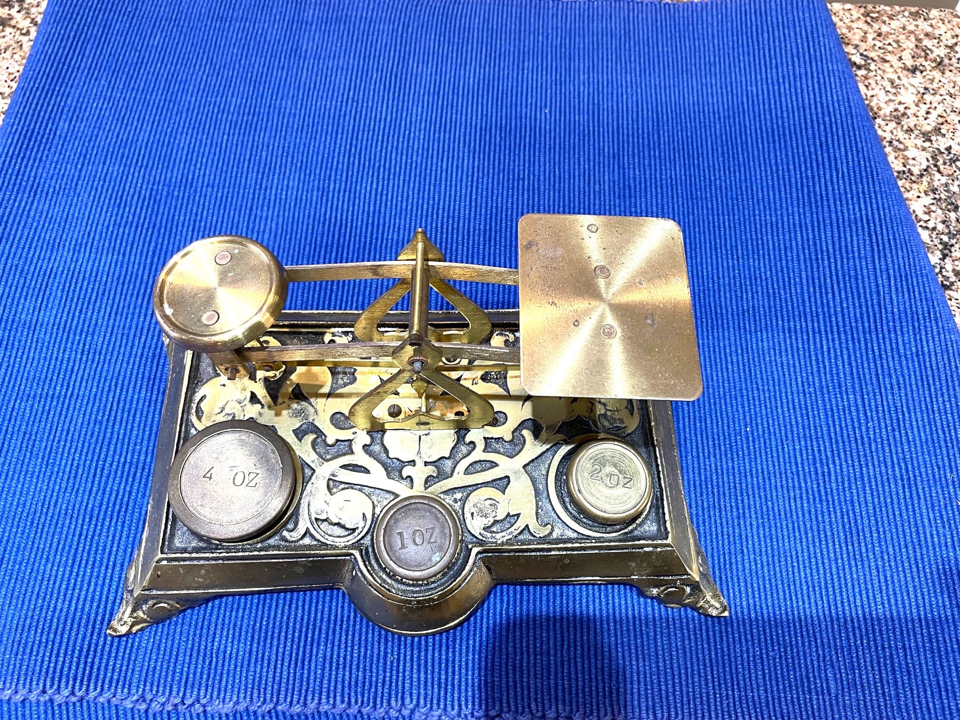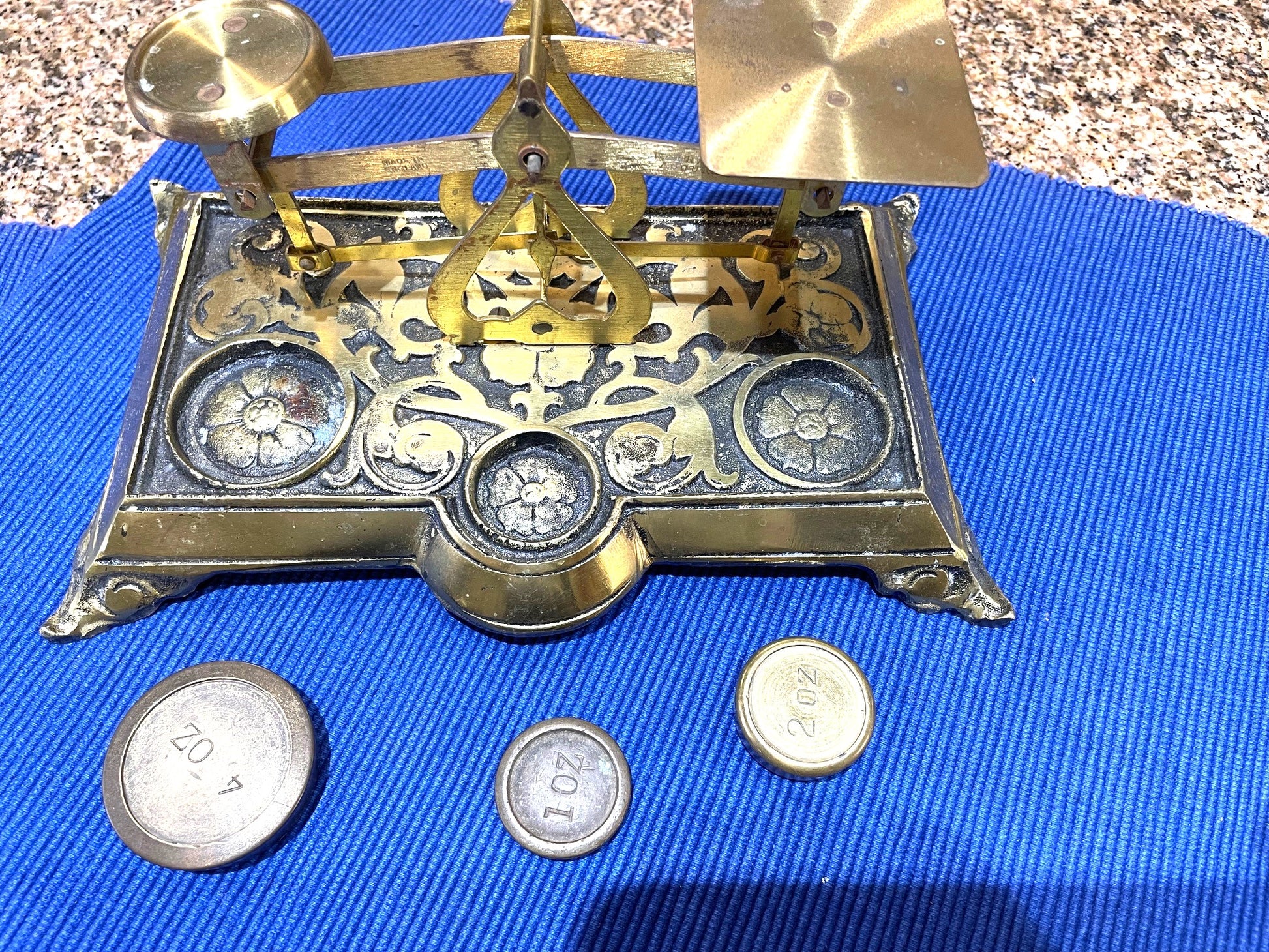 Antigua Pesa O Balanza Postal Inglesa Toda De Bronce Macizo