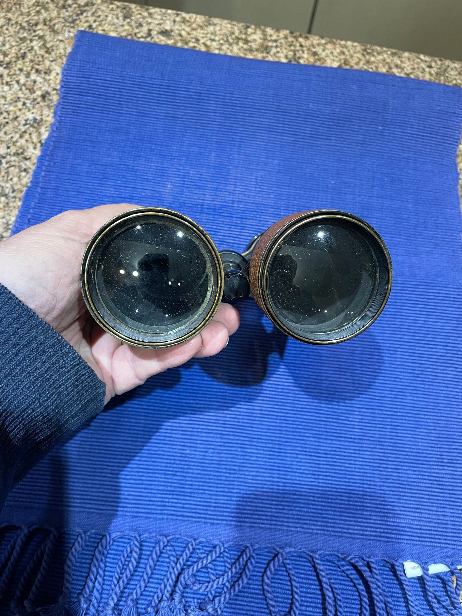 Muy antiguos binoculares de bronce. US Navy de la 1ra guerra, americanos. Dice US Naval Gun Factory ANNEX, Rochester. Mide 18 cm extendido La vision funciona bien, super decorativos