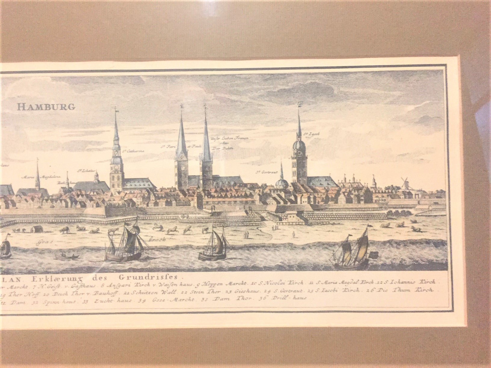 Lindo grabado enmarcado de la ciudad de Hambugo, mide 74x36 cm