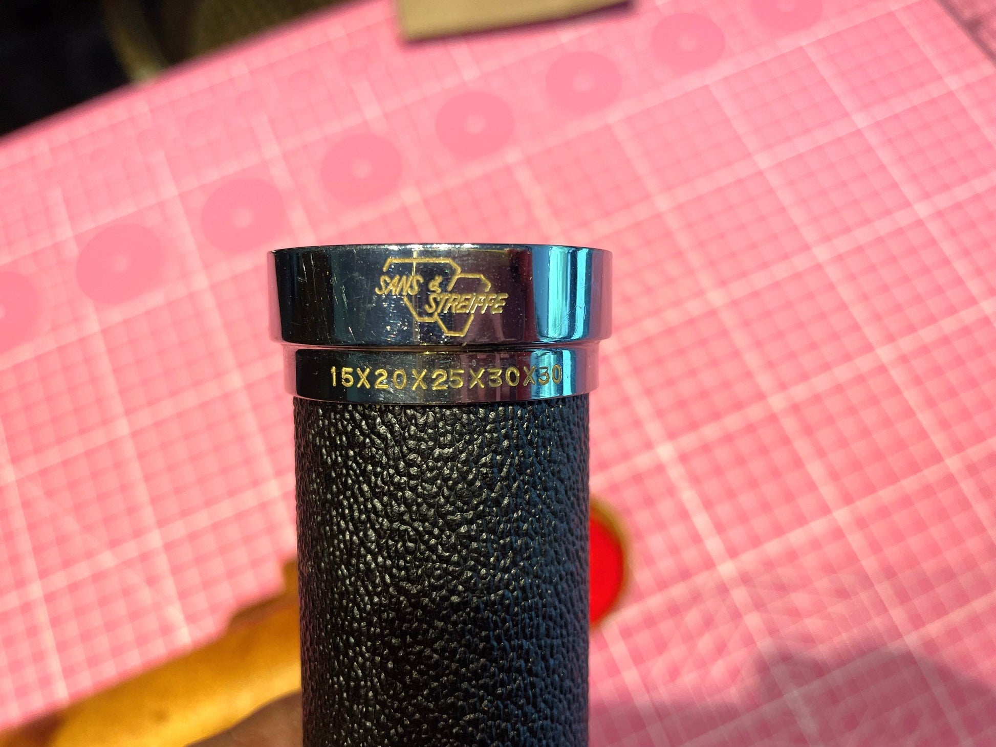 Antiguo telescopio japones de potencia variable 15x, 20x, 25 y 30x marca Sans & Streiffe,