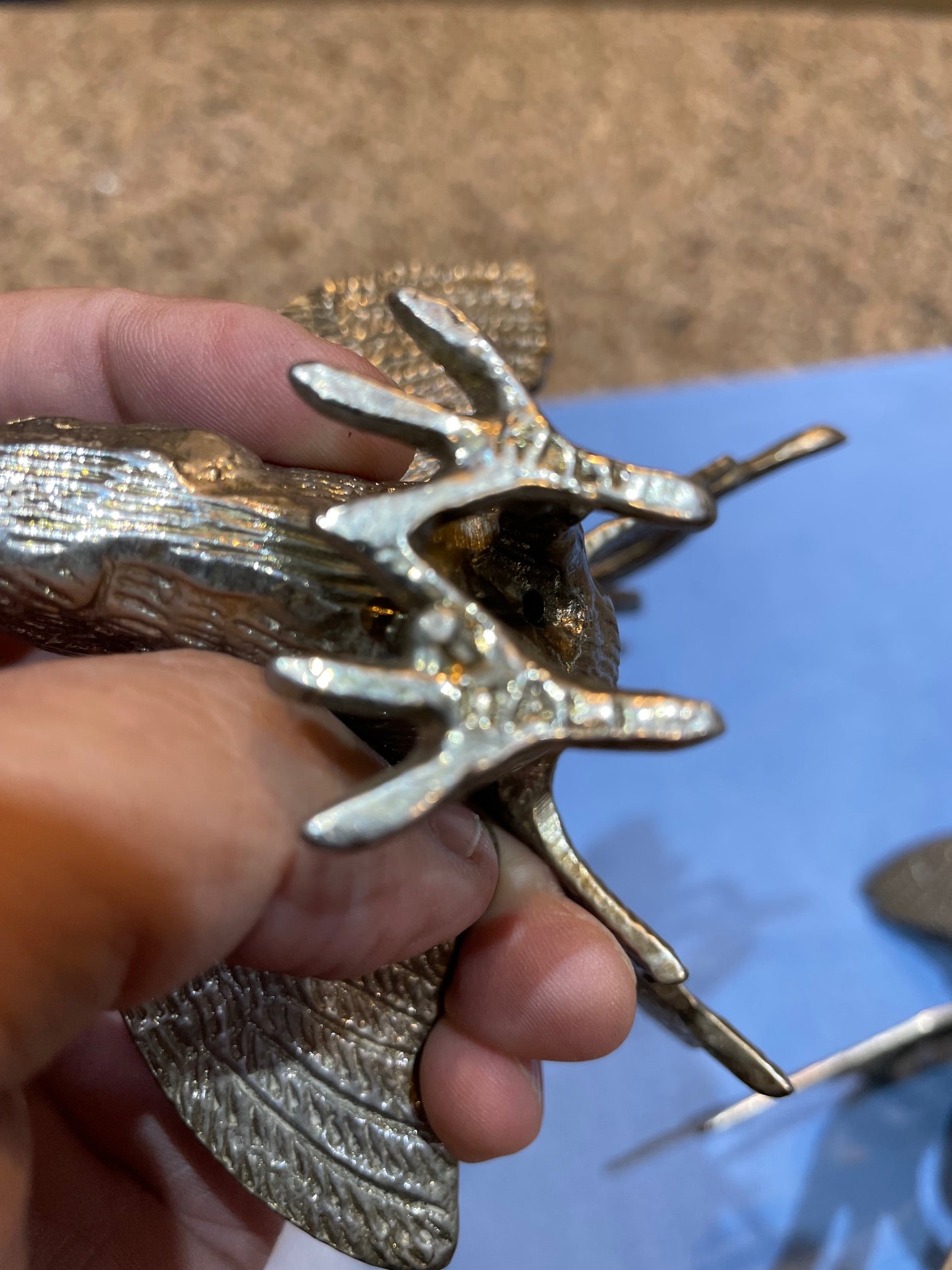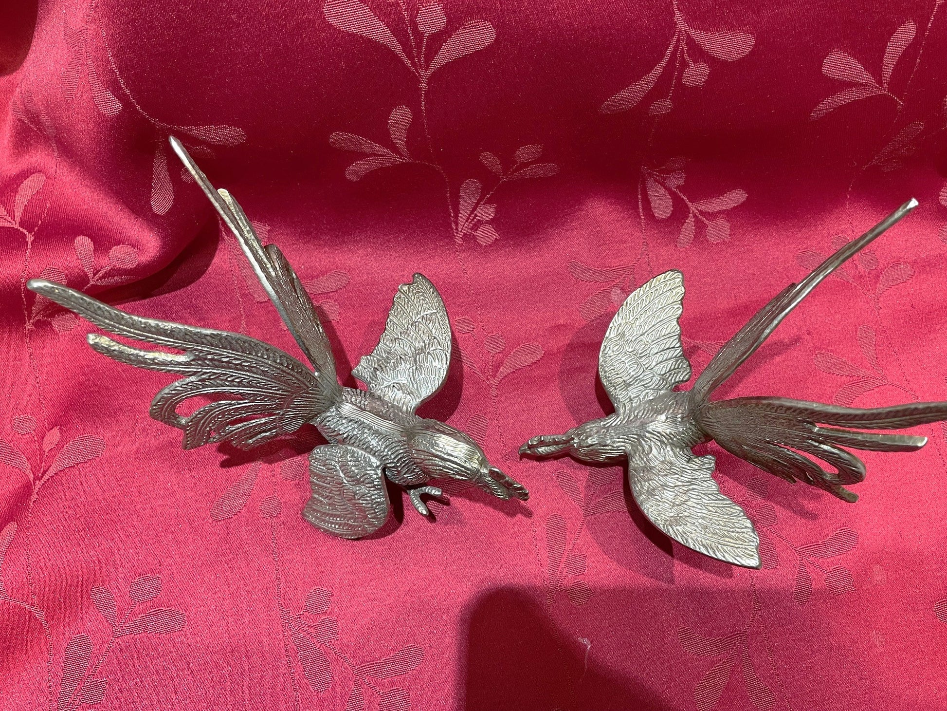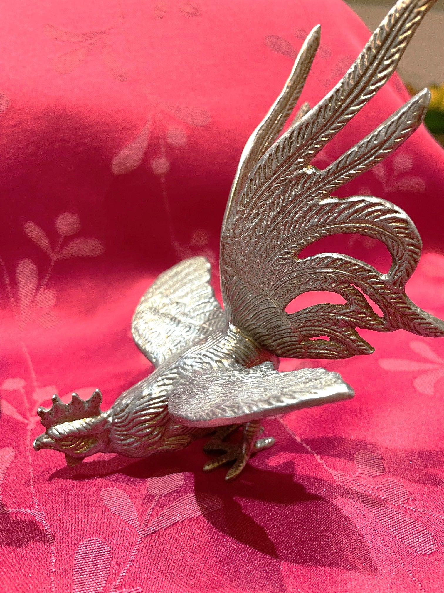 Par de adornos de gallos de pelea plateados made in Italy super decorativos en buen estado. . Miden 14 cm de alto,