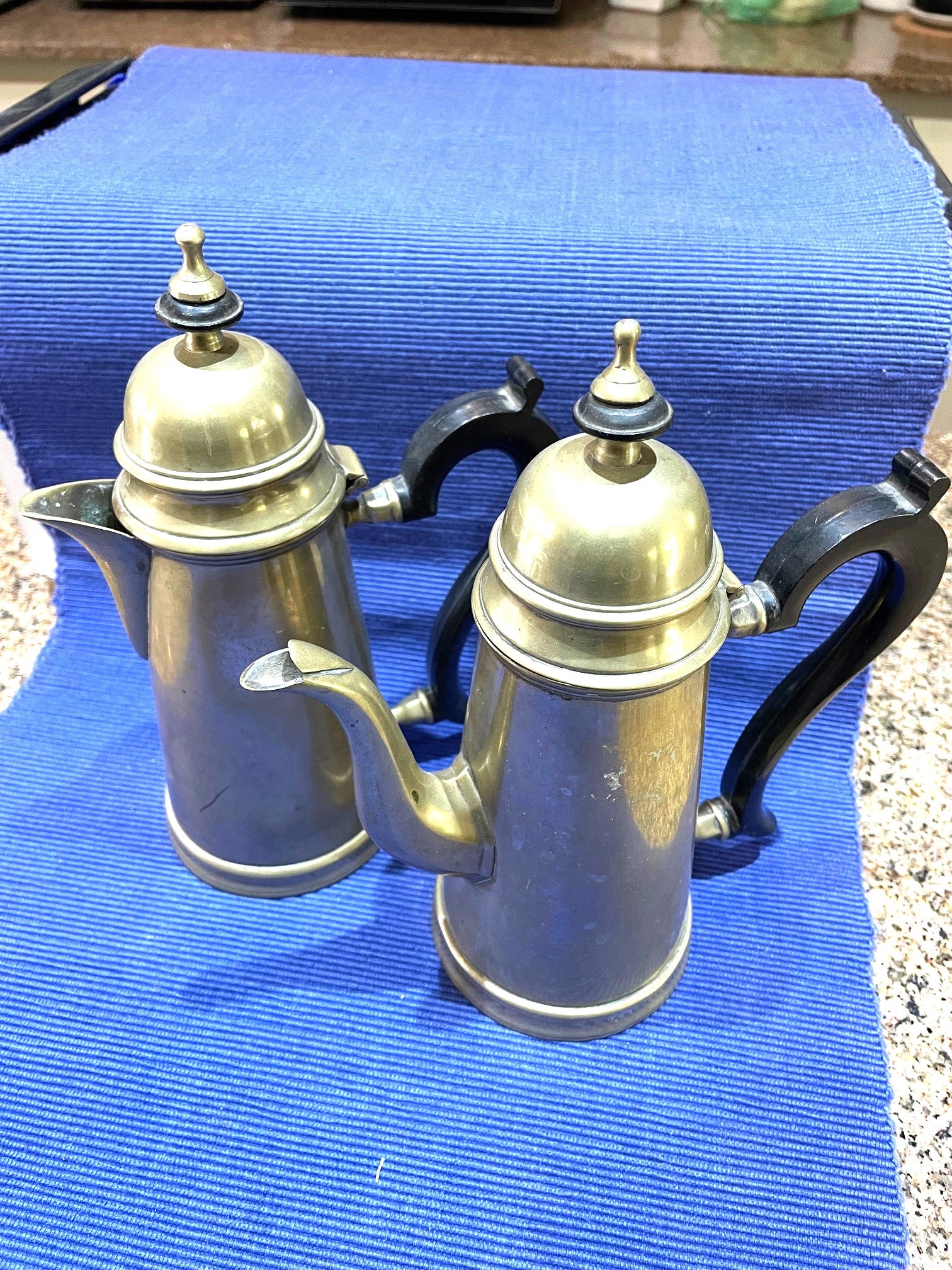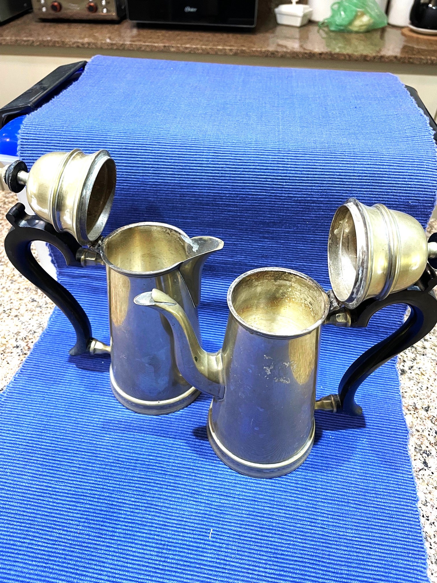Lindo Par De Tetera Y Cafetera Inglesa De Bronce Plateado