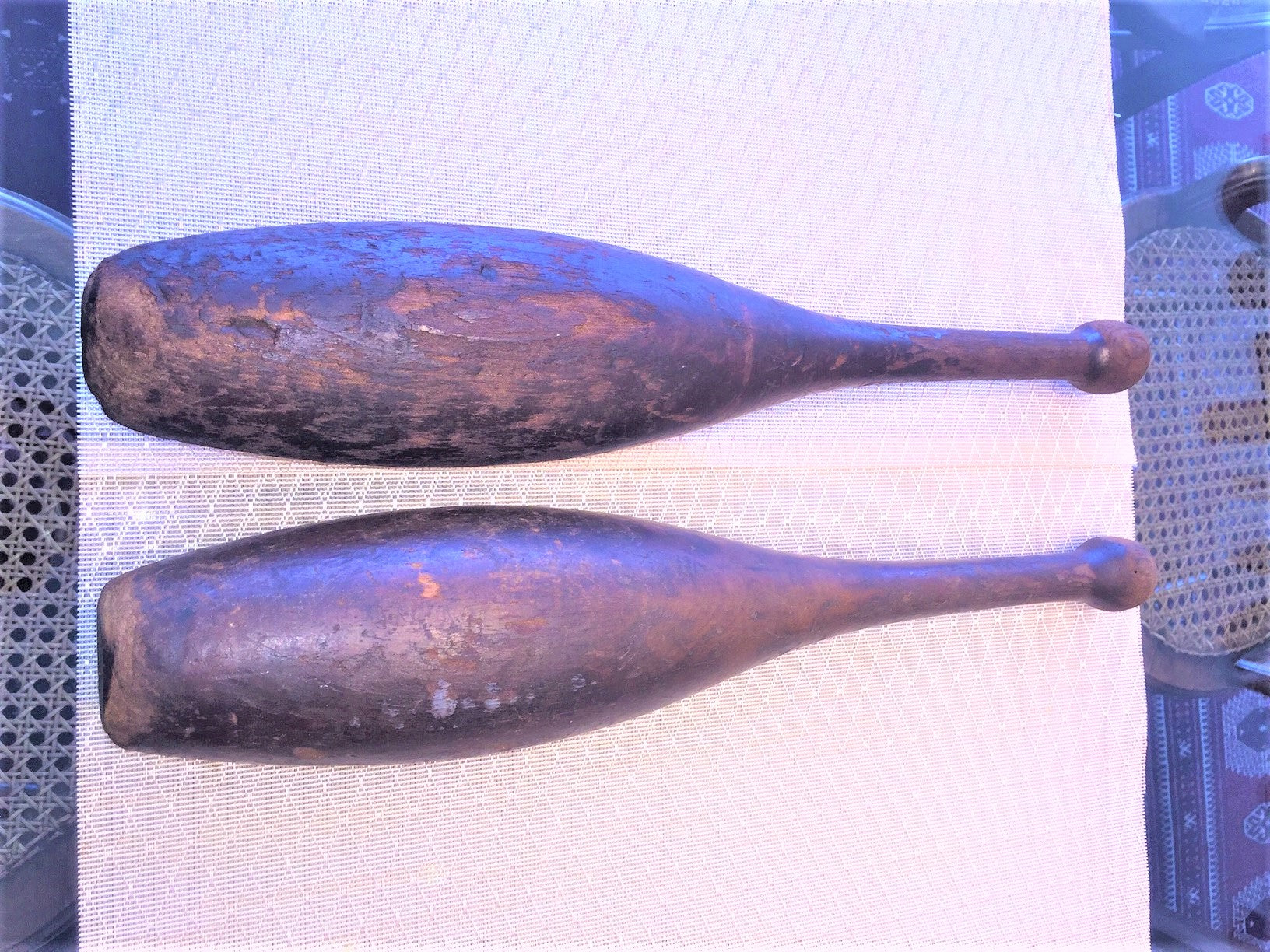 Par De Antiguos Bastones Pins De Ejercicio De Madera