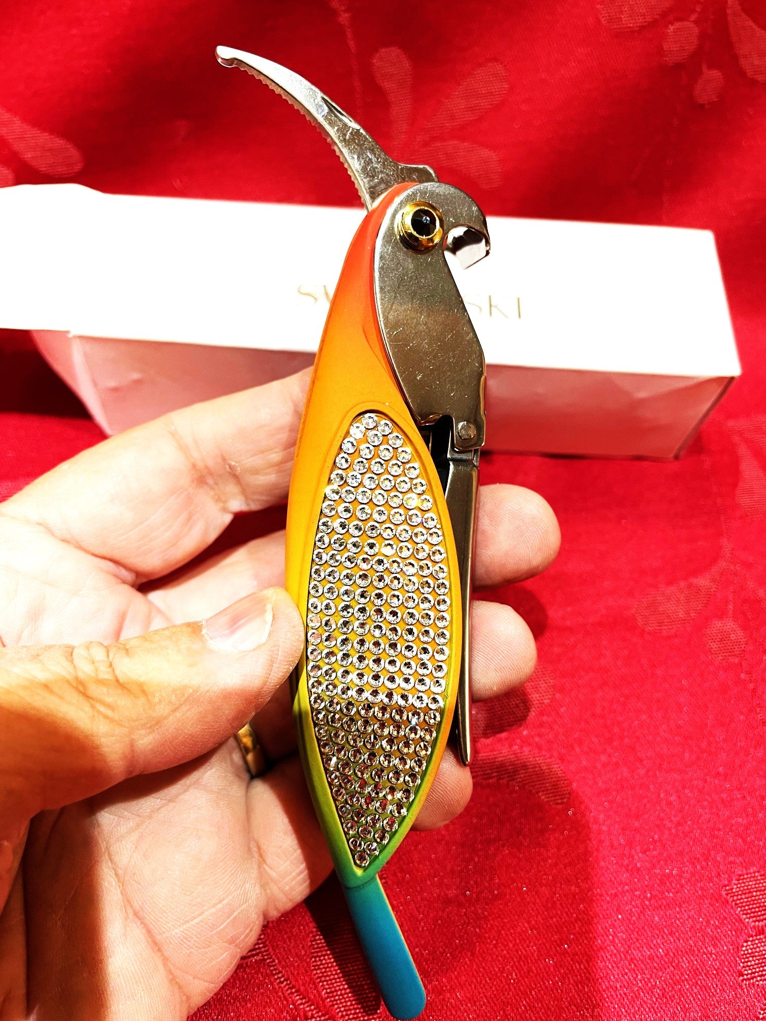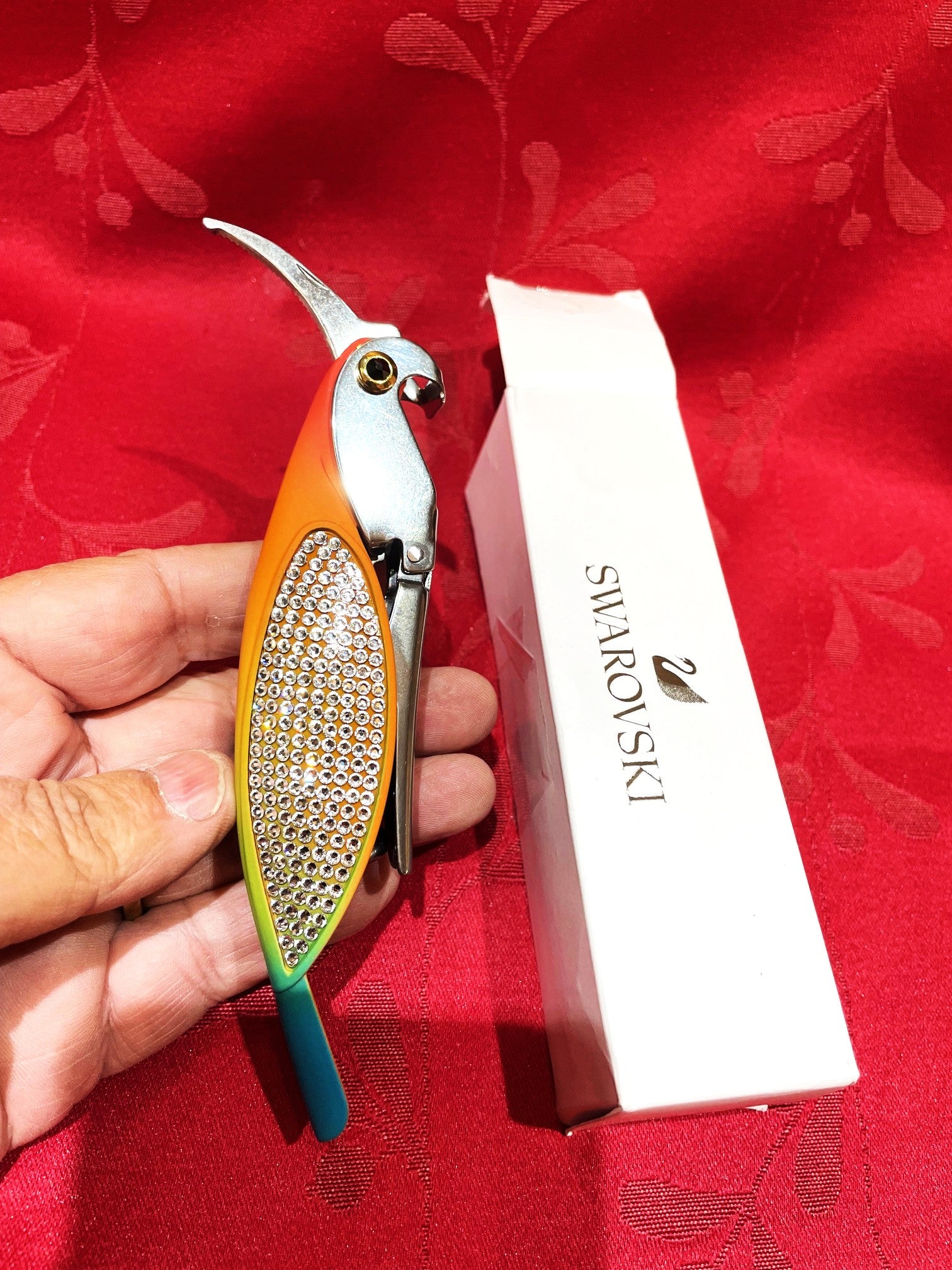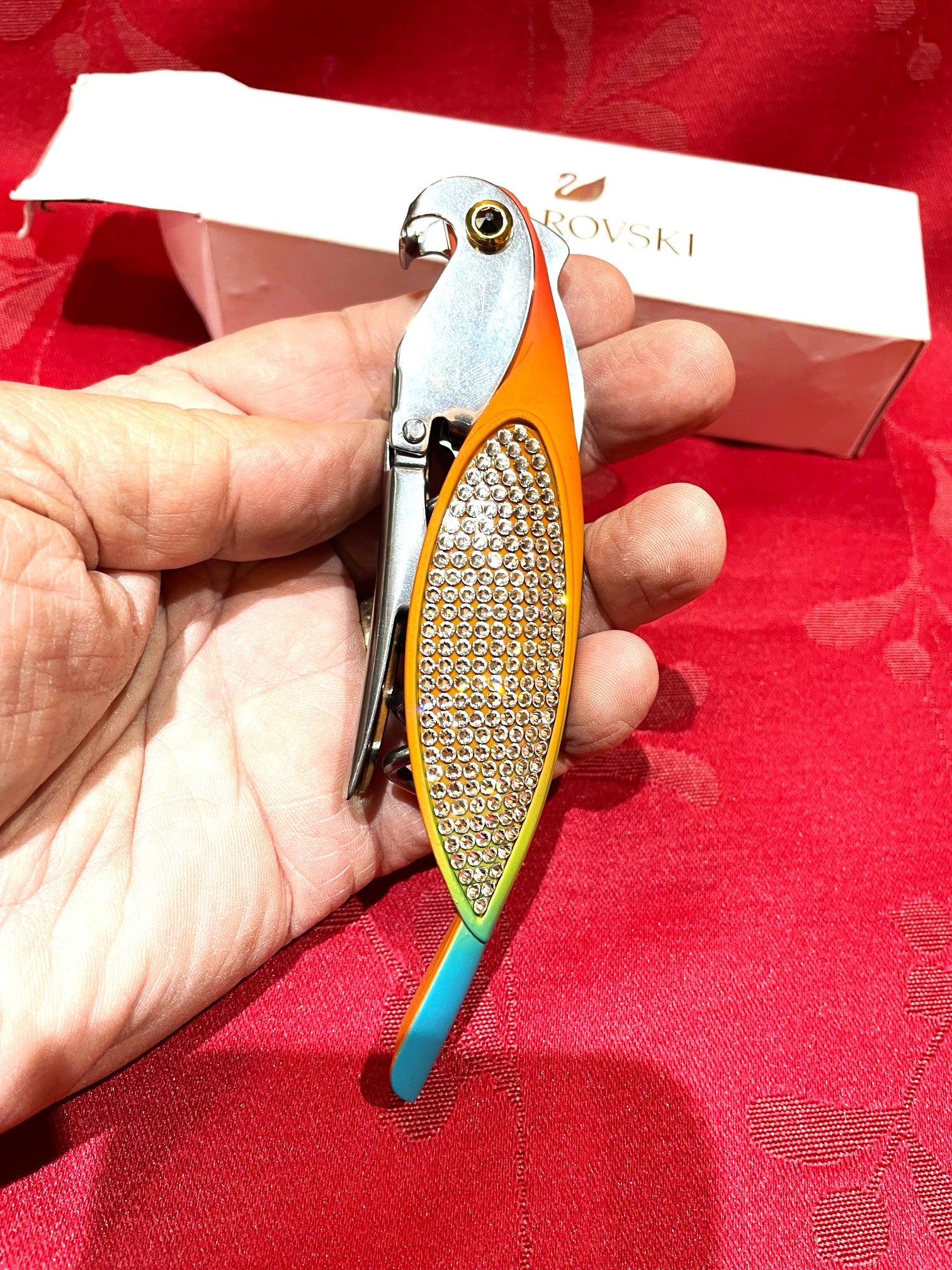 Muy fino sacacorchos Swarovski con forma de periquito. Mide 14 cm. Para uso o coleccion